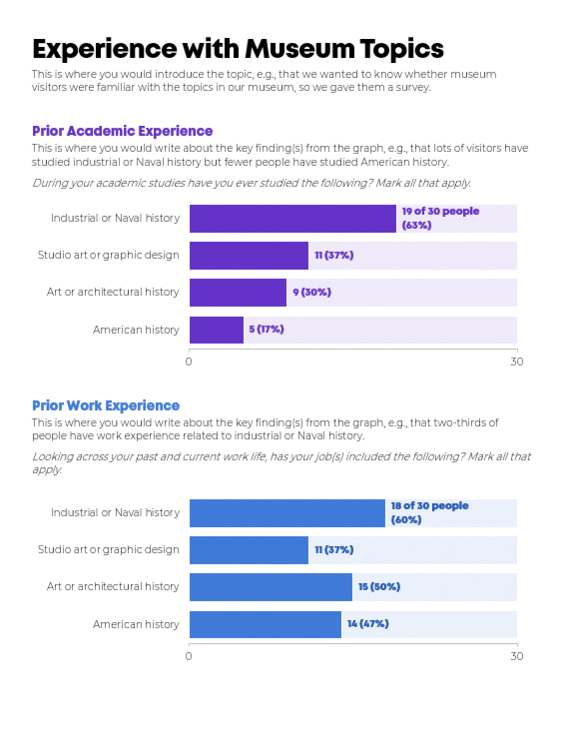 This Excel file contains templates for two different layouts of stacked bar charts and that totally awesome dot plot. You'll also received the one-page meeting handouts I designed to showcase the graphs.
