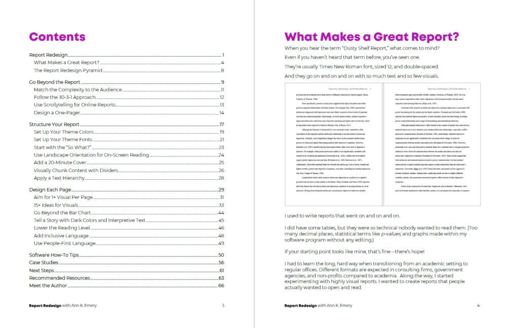 This is the ebook that accompanies my Report Redesign workshops and online courses.