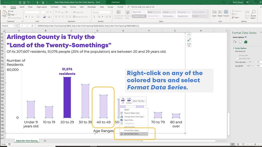 Adjusting Your Bar Chart's Spacing in Excel (by Reducing Gap Width)